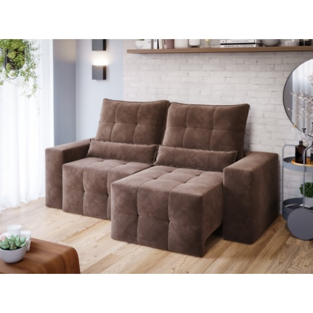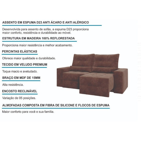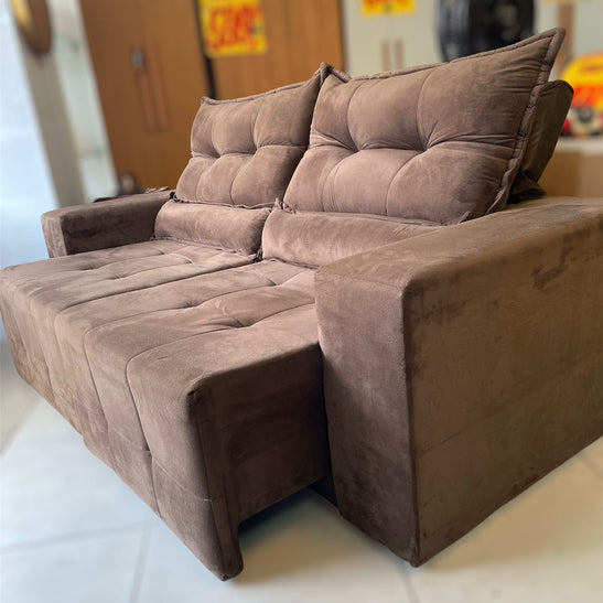 Estofado Retrátil e Reclinável Lisboa 2,00 Veludo Marrom