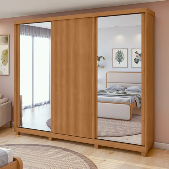 Roupeiro 3 Ptas Correr Ollie C/2 Esp S/Pés Amêndoa/Amêndoa Lopas