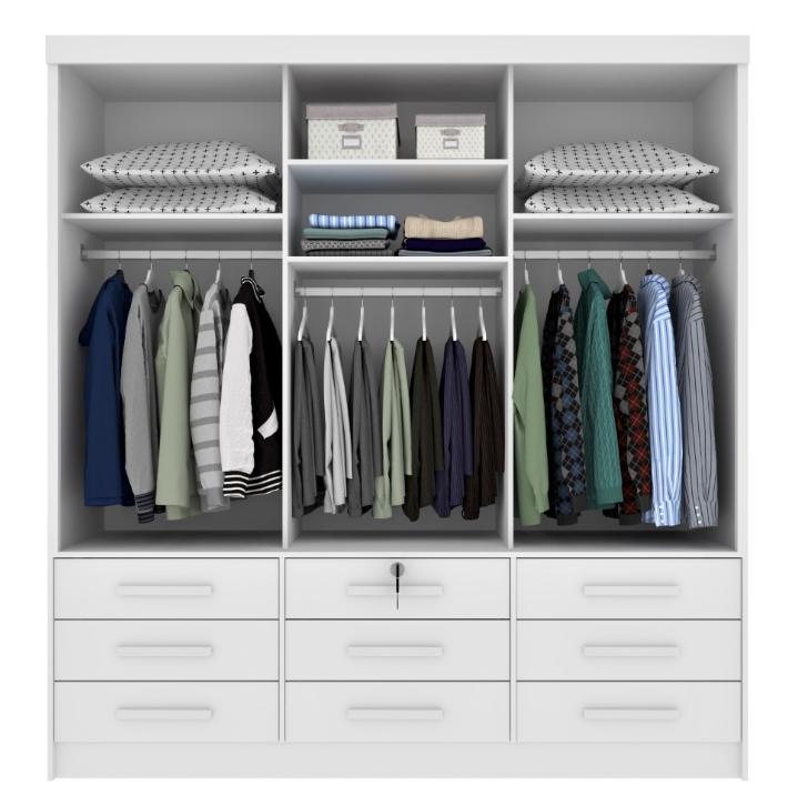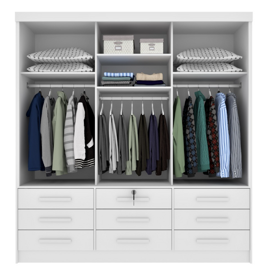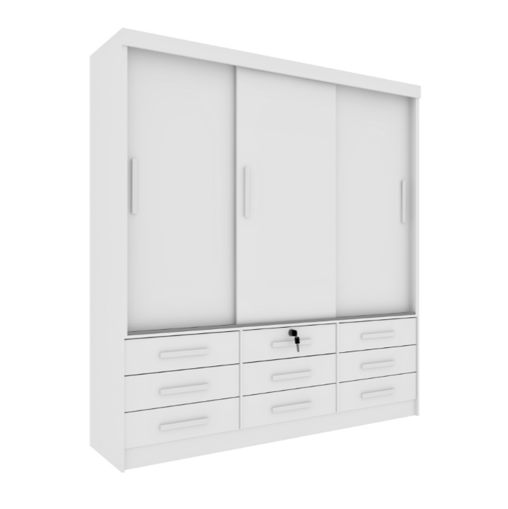 Roupeiro Chicago 3 Ptas Correr 9 Gavetas Neve S/Pés S/Espelho Tcil