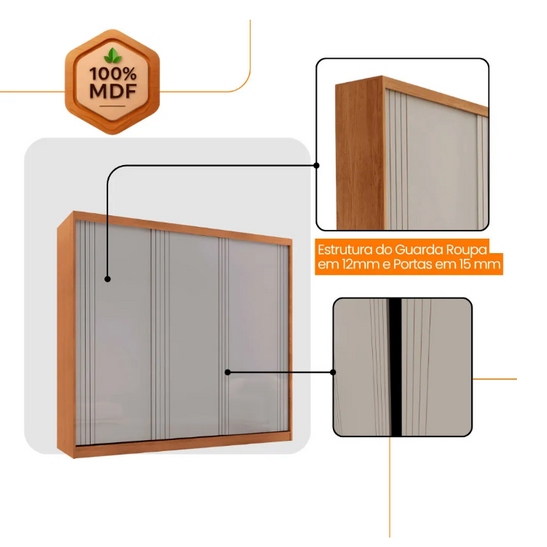 Roupeiro 3 Ptas Correr Oslo 2Gv S/Esp S/Pés Naturale/Off White Rufato