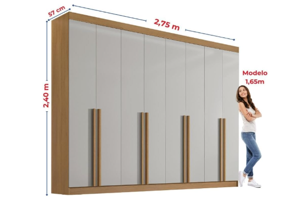 Roupeiro 8Ptas 8Gav Daymond S/Pés Cinamomo/Off White D'Doro